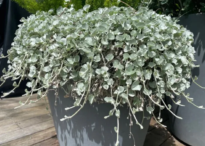 Дихондра серебристая — декоративное ампельное растение с изящными свисающими побегами и эффектной серебристой листвой. Широко используется для оформления контейнеров, кашпо и вертикального озеленения благодаря своему мягкому «струящемуся» виду.