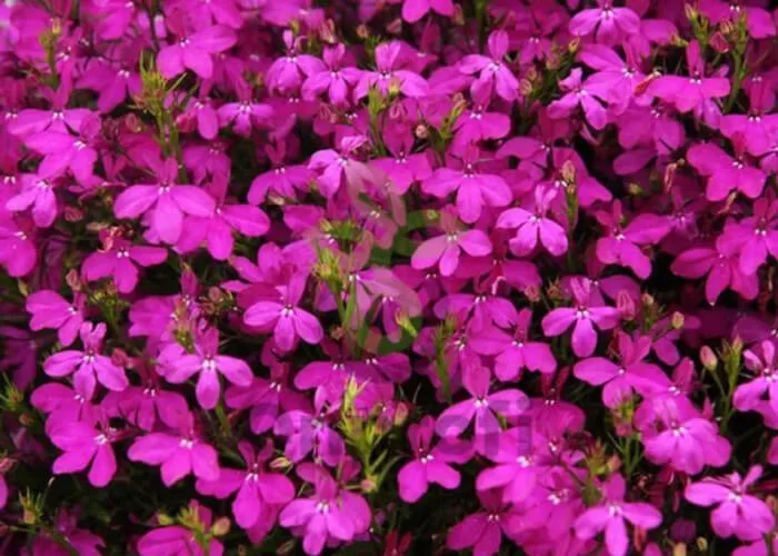 Цветение начинается летом и продолжается до осени, практически без перерывов. Лобелия вегетативная образует огромное количество мелких цветков различных оттенков: синие, голубые, фиолетовые, белые, розовые. Цветение очень обильное — листья часто почти не видны под «облаком» цветов.