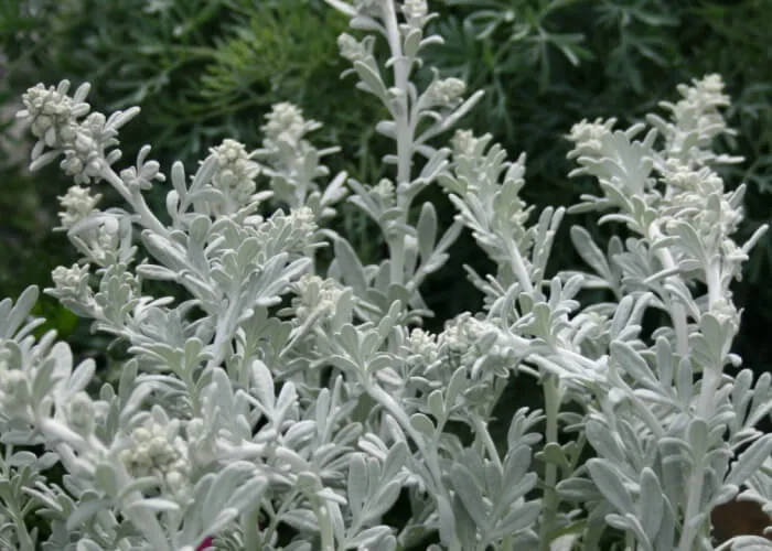 Полынь Стеллера идеально подходит для создания контрастных и текстурных композиций. Её серебристая листва подчёркивает яркие цветущие растения и добавляет «свет» в посадки.